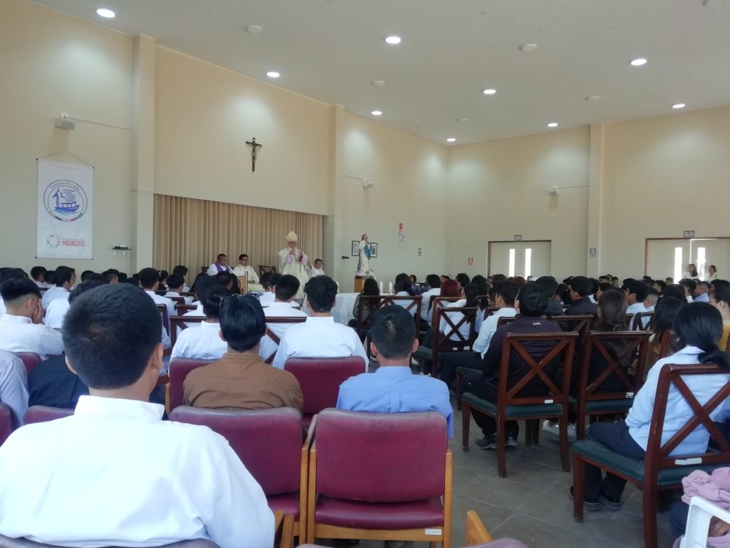 La eucaristía inició a las 10:00 a.m. y se celebró en el auditorio de Fundación Pachacútec. Estuvieron también presentes los alumnos y directores de los programas de estudio del Instituto de Educación Superior Nuevo Pachacútec: Karina Montes de Cocina, Oliver Pilares de Electricidad Industrial y Alexis Pancorvo de Administración de Empresas. Contamos también con la presencia de estudiantes y docentes de los cursos de Peluquería y Contact Center de nuestro CETPro Nuevo Pachacútec. Finalmente, se contó con una delegación de estudiantes de nuestro colegio Luisa Astrain, encabezados por su Director Vladimir Sosa, así como docentes.