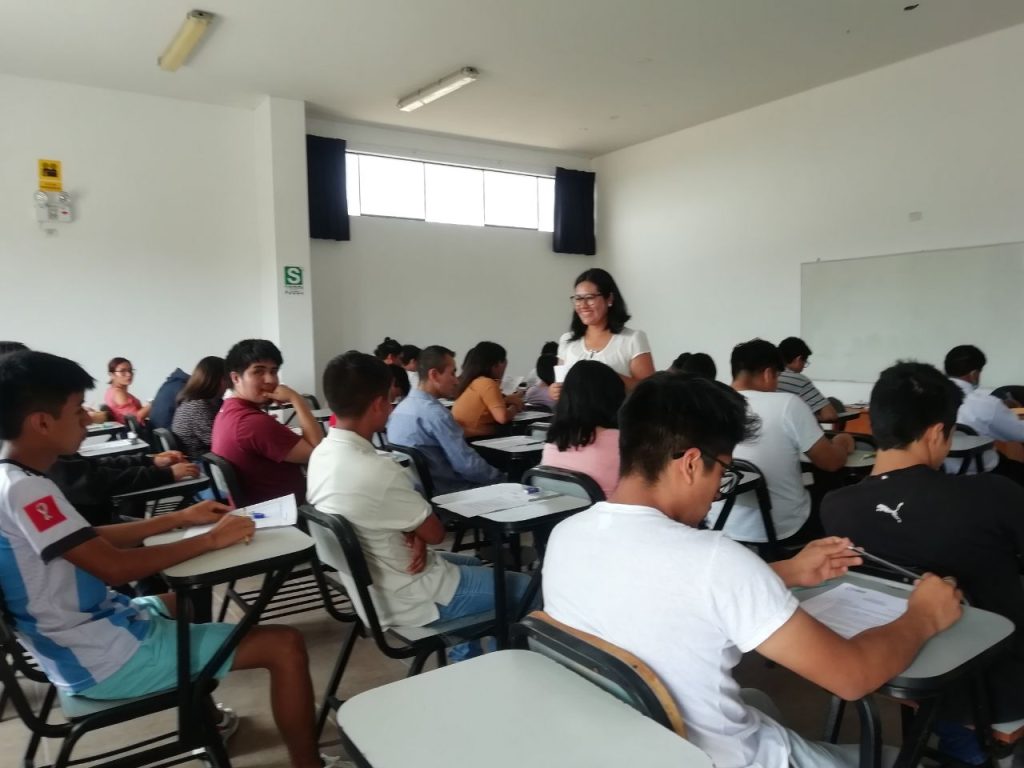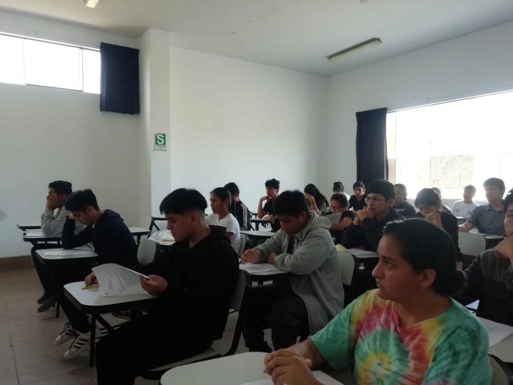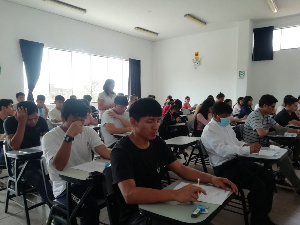 La primera etapa para estudiar alguna de nuestras carreras es un examen escrito. Este Examen de Admisión 2023-1 tuvo lugar el pasado sábado 18 de febrero. Guiados por los coordinadores, cada postulante pudo ubicar su respectivo salón, además de poder ubicarlo también en los carteles. Cuando el reloj marcó las 10:00 a. m. en punto las puertas del campus se cerraron y marcó el inicio del examen.